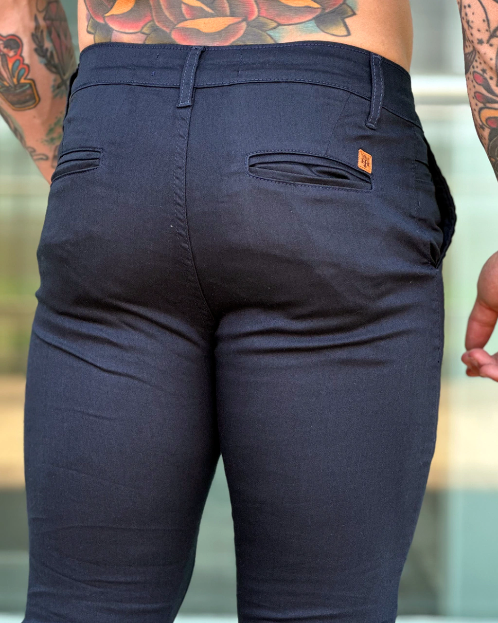A Calça Alfaiataria Italiana Azul Marinho combina elegância e praticidade, feita com 97% algodão e 3% elastano. Com modelagem skinny, bolso faca, dois bolsos frontais e dois traseiros, e fechamento com zíper e botão, ela oferece um ajuste perfeito e confortável. Recomenda-se escolher um tamanho maior devido ao modelo pequeno. A calça tem garantia contra defeitos de fabricação e é ideal para qualquer ocasião, do casual ao formal. Consulte a tabela de medidas para um ajuste ideal e adicione essa peça versátil ao seu guarda-roupa.