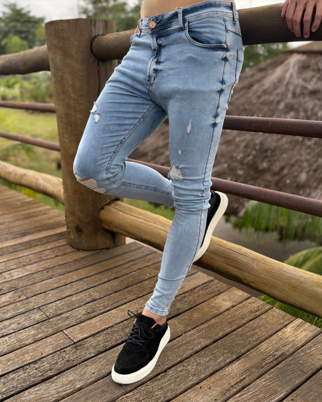 Eleve seu estilo com a Calça Jeans Media Destroyer, disponível. Confeccionada em denim de alta qualidade, esta calça une conforto e estilo em um só produto.