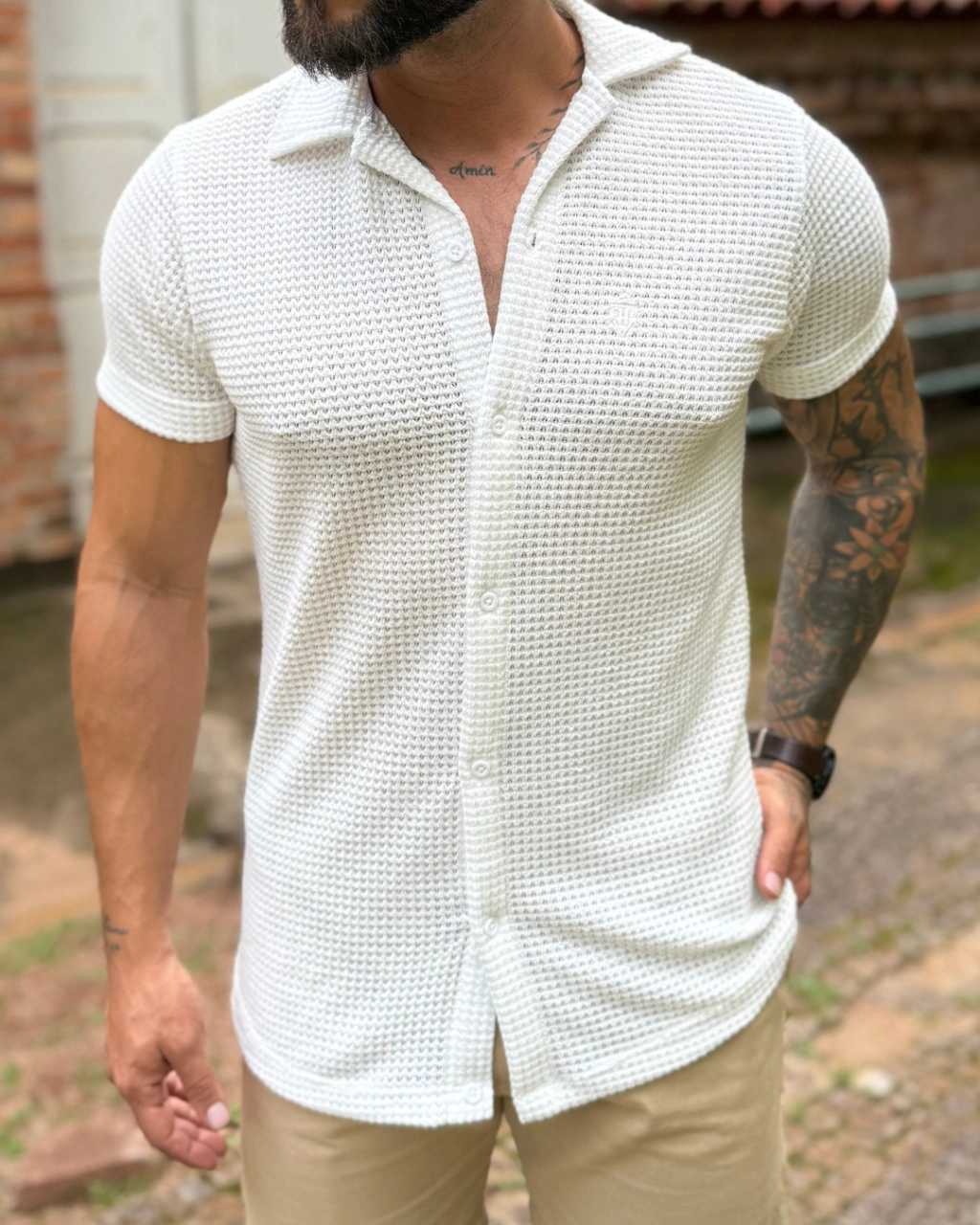 Camisa Riviera Manga Curta Atacama Branca Texture