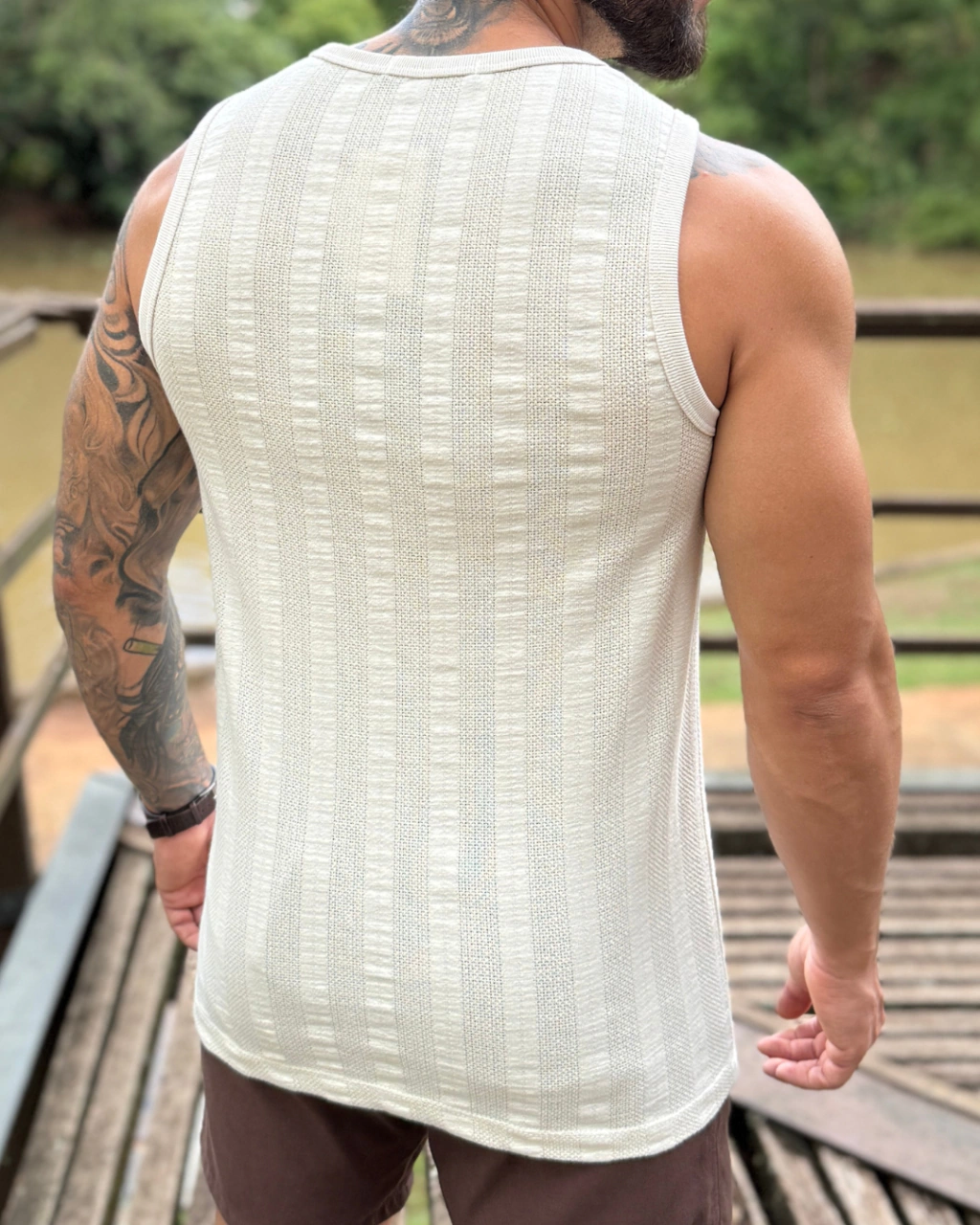 A Regata Riviera Resort é a escolha perfeita para dias mais quentes, unindo estilo, conforto e praticidade em uma única peça. Confeccionada no mesmo tecido texturizado da linha — com 95% algodão e 5% elastano — oferece toque macio, elasticidade ideal e um caimento leve ao corpo.No tom off white, transmite elegância descontraída e combina facilmente com jeans, bermudas ou calças de sarja. Uma peça versátil e moderna, ideal para compor looks casuais sofisticados com leveza e personalidade.